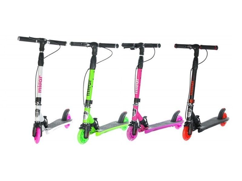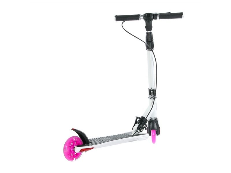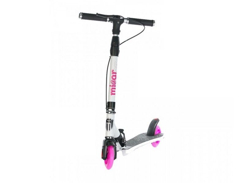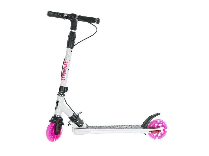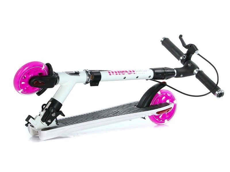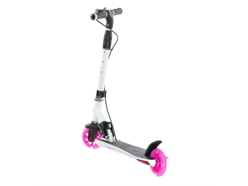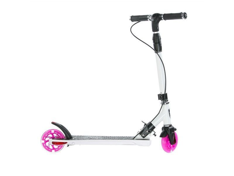 Стильный складной двухколёсный самокат для детей. Особенностью модели являются светящиеся колеса размером 125 мм, которые благодаря светодиодной подсветке мерцают во время движения. Также фишкой самоката являются ручной тормоз, которым могут похвастаться немногие складные модели. Прочные подшипники и полиуретановые колеса, которые долго противятся истиранию. Удобная платформа с нескользящим прорезиненным покрытием . Руль регулируется по высоте.