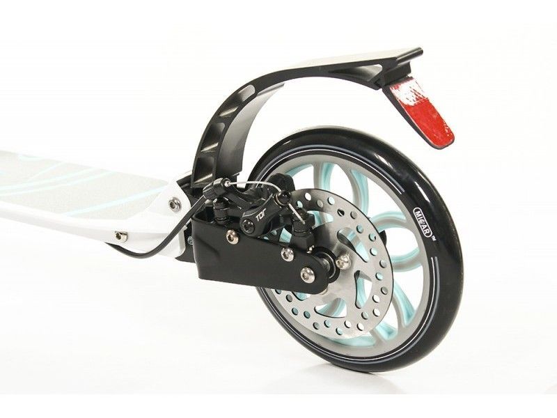 Руль самоката легко регулируется по высоте и надёжно фиксируется благодаря специальному зажиму на ручке самоката. Storm 200 мм легкий и поэтому идеально подходит для детей младшего возраста, поскольку незначительный вес позволяет переносить его через тротуар и ступени без посторонней помощи. Городской самокат оснащён ручным дисковым тормозом заднего колеса, а также удобным педальным тормозом-крылом, расположенным над задним колесом самоката.