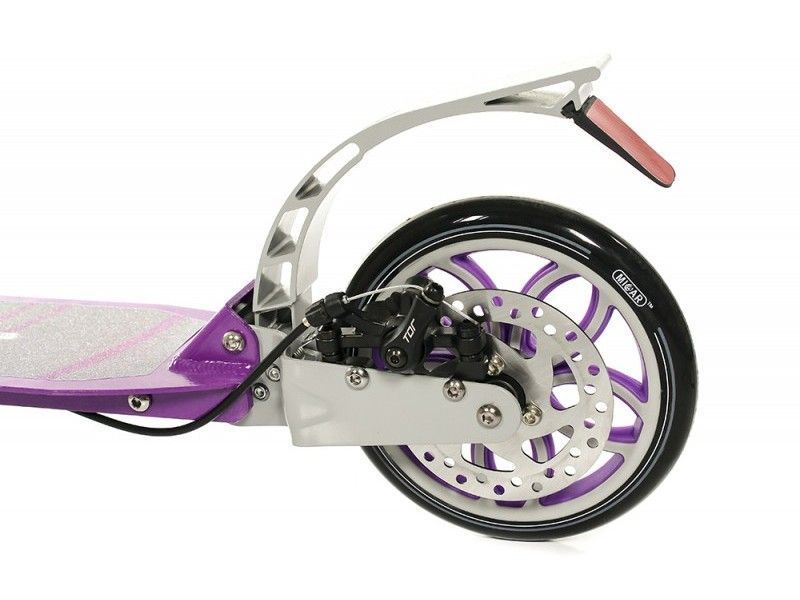 Руль самоката легко регулируется по высоте и надёжно фиксируется благодаря специальному зажиму на ручке самоката. Storm 200 мм легкий и поэтому идеально подходит для детей младшего возраста, поскольку незначительный вес позволяет переносить его через тротуар и ступени без посторонней помощи. Городской самокат оснащён ручным дисковым тормозом заднего колеса, а также удобным педальным тормозом-крылом, расположенным над задним колесом самоката.