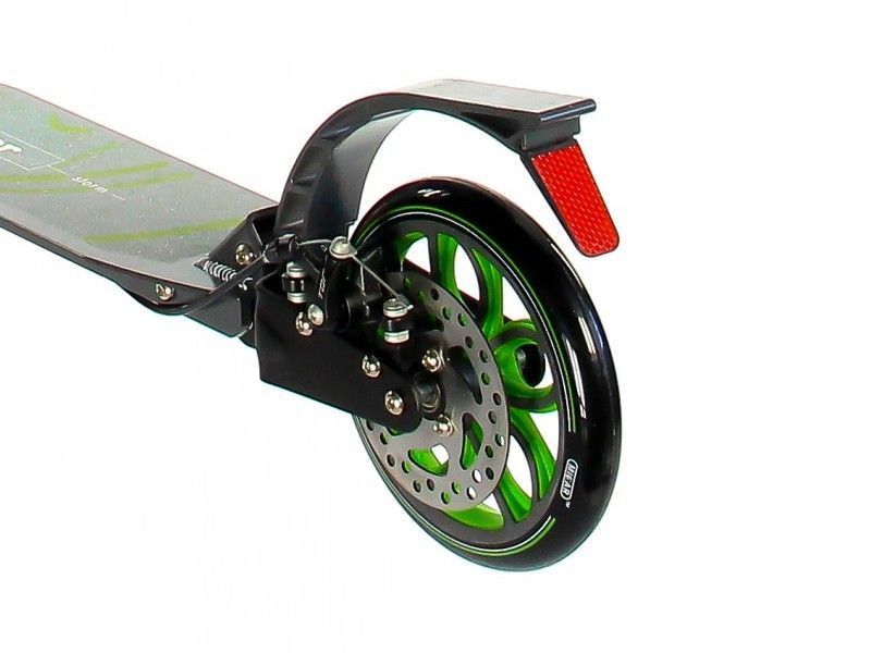 Руль самоката легко регулируется по высоте и надёжно фиксируется благодаря специальному зажиму на ручке самоката. Storm 200 мм легкий и поэтому идеально подходит для детей младшего возраста, поскольку незначительный вес позволяет переносить его через тротуар и ступени без посторонней помощи. Городской самокат оснащён ручным дисковым тормозом заднего колеса, а также удобным педальным тормозом-крылом, расположенным над задним колесом самоката.