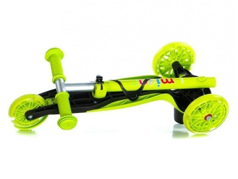 Детский самокат Scooter Mini Jet идеально подойдёт для малыша, которому уже исполнилось 1.5 - 2 года и он уже активно ходит, бегает и прыгает. Самокат выполнен из высококачественных материалов, благодаря чему его вес максимально облегчен. Благодаря тому, что самокат обладает лёгким весом, управлять им одно удовольствие и радость для начинающего спортсмена . Мягкие колеса (125 мм - передние и 100 мм - заднее) сглаживают неровности дороги, обеспечивая плавный накат. Руль самоката mini можно регулировать в трёх положениях. Самокат Jet станет отличным компаньоном для Вашего ребёнка во время городских прогулок.Ручка самоката съёмная и крепится с обратной стороны деки для удобной транспортировки. Яркая фишка этой модели - светящиеся колеса.