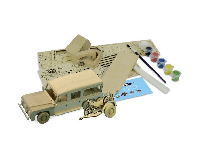 Представленный набор для сборки автомобиля Land Rover МОТОГОНЩИК из серии "Моя первая деревянная модель" - новая серия игрушек, сделанных для детей старше 8 лет.