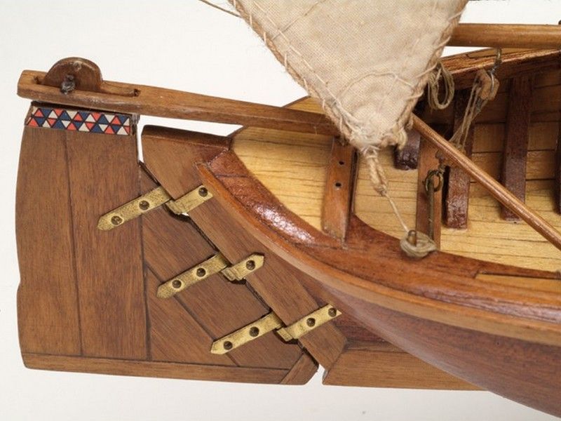 Корпус выполняется классическим способом из уже созданных киля и форштевней. Его обшивка производится в два слоя. Вниз идет прочная древесина, обеспечивающая нужную защиту, а верхний слой изготавливают из декоративных пород. Палуба также обшивается рейкой, при этом используется светлый материал. Все элементы обшивки представлены в уже готовом состоянии, подходят по размеру и не требуют дополнительной обработки. В готовом состоянии предлагаются и другие элементы, в частности: рамы, крепежные утки, петли, якорь, ведро, кольца. В набор входит металлическая плита, оборудованная трубой.
