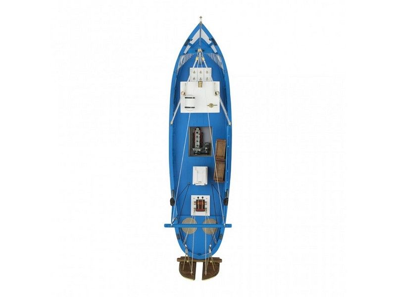 Набор для постройки знаменитого траулера создан на предприятиях концерна Artesania Latina, знаменитого богатством ассортимента и качеством выпускаемых изделий. MARE NOSTRUM в первую очередь отличается простотой сборки, чему способствуют каркасные детали, из которых собирается корпус. Впоследствии он получает двойную обшивку, в частности нижний слой выполняется из светлых реек, а верхний - из темных, что позволяет придать изделию шикарный внешний вид. Кроме этого, здесь в комплекте присутствует целый ряд уже готовых деталей, чье наличие избавляет авторов от дополнительных работ по их созданию. Речь идет о лебедке, утках для крепления, блоках, баке, латунных шкивах и литом моторе. При этом фантазия моделиста ничем не ограничивается и много операций ему предстоит выполнить самостоятельно.