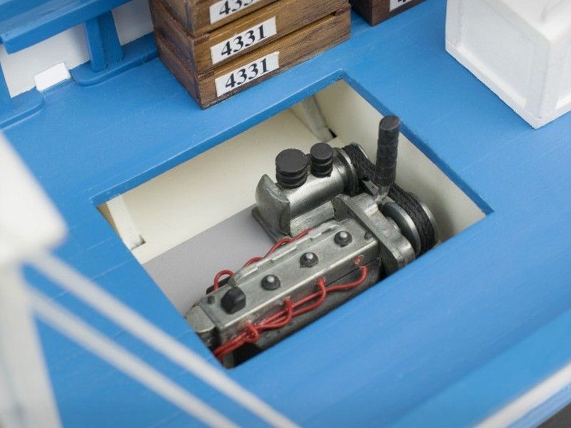 Это касается производства мачты, заготовки для которой имеются в комплекте, а также сборки палубных надстроек, установки дверей и трапов, и, конечно же, протяжки такелажа. Ящики для хранения улова также создаются из отдельных реек, так что процесс не даст заскучать. Ко всему прочему, в набор входит пластик для окон, табличка с названием траулера и его номер, созданный с применением деколи. Процедуру существенно облегчит русскоязычная инструкция вместе с иллюстрированными чертежами и пояснениями специалистов.