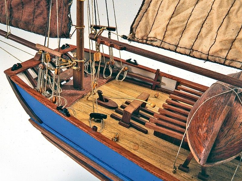 Отдавая дань стойкости человеческого духа, фирма "Artesania Latina" выпустила великолепную деревянную сборную модель, в точности отображающую судно "Marie Jeanne". В твердой картонной коробке, радующей качественной и яркой полиграфией, вы найдете стандартный набор из корпуса, киля и шпангоутов. Тканевые паруса прострочены и подрублены. Кромка парусов отделана ликтросом. Также в наборе идут нити для такелажа, якоря, юверсы и прочие аксессуары. Здесь же в отдельном целлофановом пакете находятся детализированные рабочие чертежи килевой рамки и шпангоутов, цветной буклет, демонстрирующий этапы сборки, и переведенная на русский язык инструкция. Приятным моментом является наличие подставки под макет.