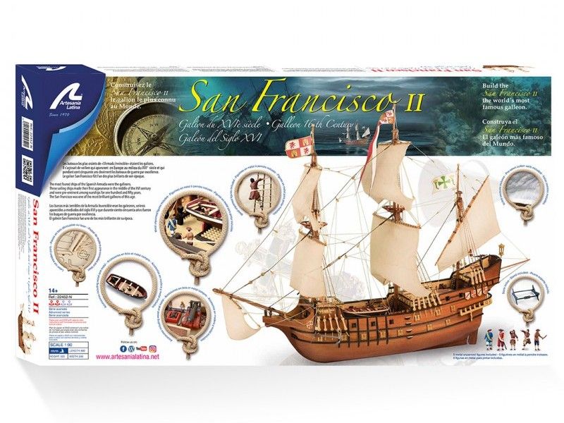 Основными кораблями Испанской Армады были галеоны. Эти суда появились в XVI веке и были более крупные и быстроходные, чем каракки или нао. На протяжении почти двухсот лет караваны из нескольких десятков галеонов доставляли золото, серебро, табак, индиго, кошениль и т.д. из Америки в Испанию. San Francisco II - один из ярких представителей галеонов той эпохи.