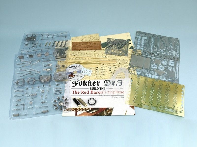 Набор для постройки модели немецкого триплана Fokker Dr.I Red Baron порадует модельеров. Это деревянная модель немецкого самолета в масштабе 1/16, очень компактная и имеет множество деталей. Подробная копия использует те же материалы, что и оригинал: металл для фюзеляжа, дерево для крыльев.