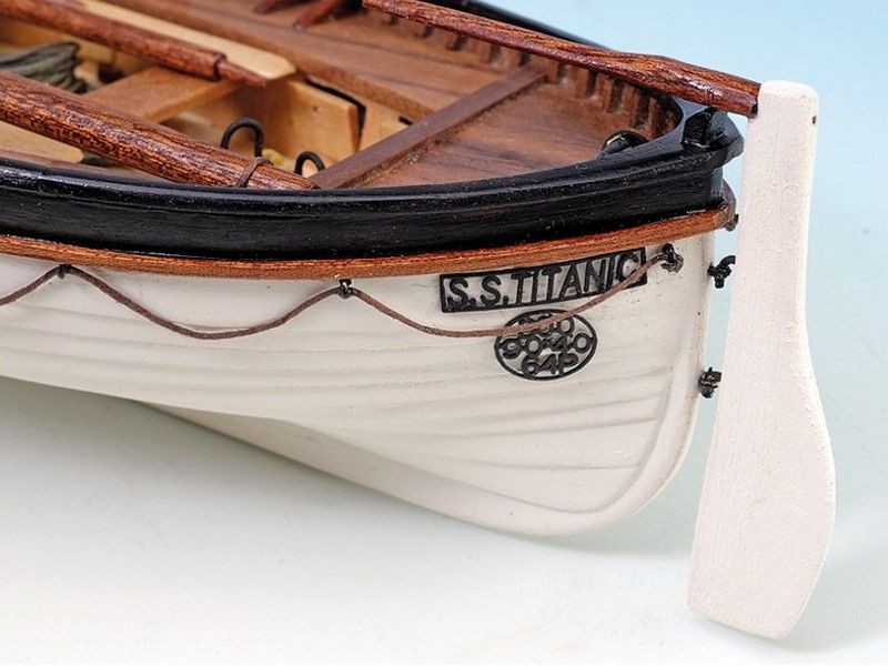 Особое внимание на себя обращает подробный интерьер, что довольно редко для моделей такого класса. Он позволяет полностью воссоздать атмосферу, царящую в шлюпке, когда на нее сели спасающиеся пассажиры. Для этого в набор включено множество элементов, материалом для которых стала латунь и ценные древесные породы. Приятным сюрпризом станет оригинальная подставка с держателями, а помощь при сборке окажет подробная инструкция с пошаговым руководством и цветными иллюстрациями. Готовая модель станет украшением коллекции, а набор можно использовать как прекрасный подарок любителю моделирования.