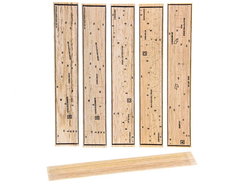 В комплекте все необходимые части из бальзы, пластиковые обтекателии кабины, пластиковые детали шасси, пластиковые колеса, нитки, ткань, резинка, воздушный винт. Сделано в США.