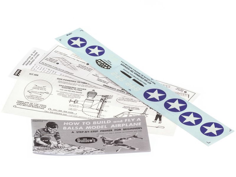 В комплекте все необходимые части из бальзы, пластиковые обтекателии кабины, пластиковые детали шасси, пластиковые колеса, нитки, ткань, резинка, воздушный винт. Сделано в США.