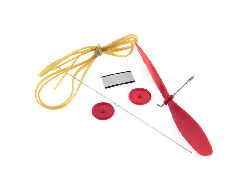 В наборе используется высокоточная лазерная резка деталей самолета, ткань высокого качества для обтяжки крыла, пластиковые пропеллер и колеса, резиномотор. Все, что вам нужно - клей и инструменты!