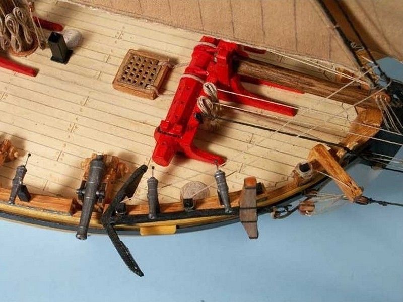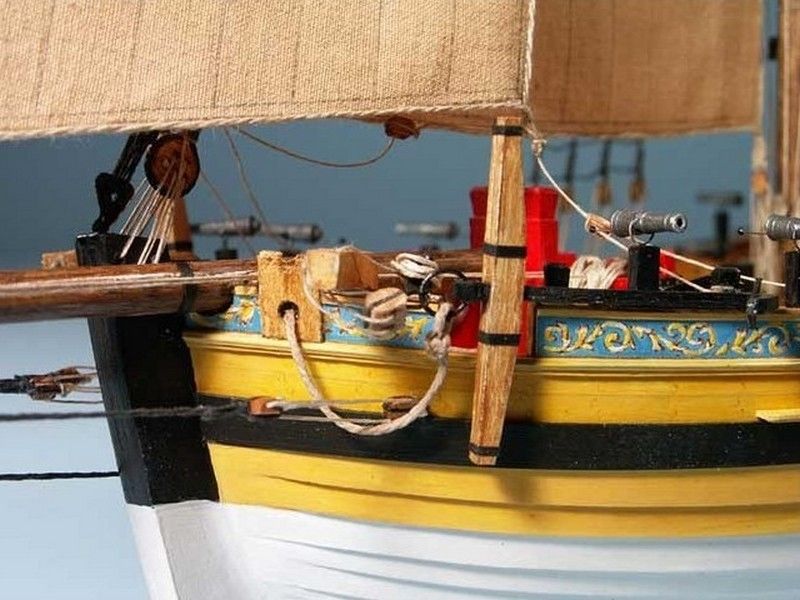 На сборочных листах даны понятные, информативные схемы сборки бумажной модели, включая проводку такелажа. Там же есть чертежи всех рангоутных деревьев (мачт, рей) и выкройки парусов.