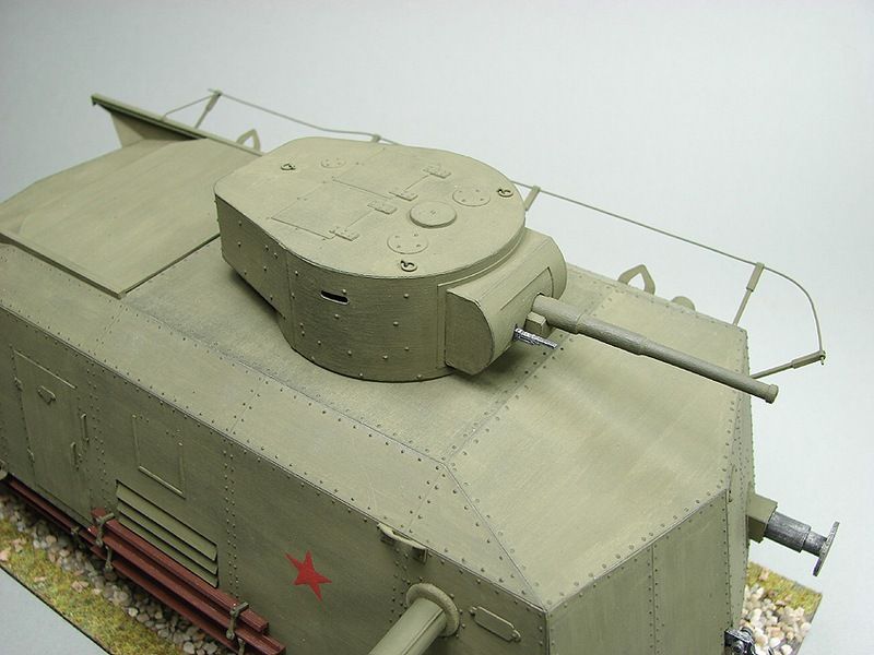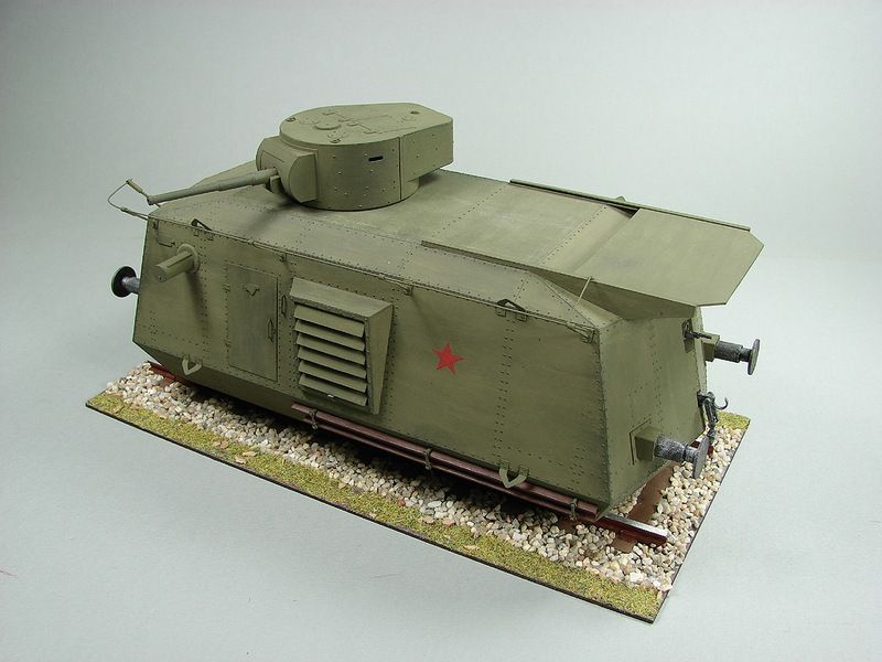 Тяжелая бронедрезина БДТ была разработана в 1934 г. Вооружение состояло из 45-мм пушки со спаренным пулеметом ДТ в башне от танка Т-26, установленной в средней части корпуса, трех бортовых пулеметов Максим в шаровых установках, пулемета ДТ в задней стенке корпуса и зенитной спаренной установки пулеметов Максим типа НИАП в задней части корпуса, которая выдвигалась и могла вести огонь через специальный люк в крыше. Возимый боекомплект составлял 154 снаряда, 21000 патронов к пулеметам Максим и 1536 к ДТ. За 1935-37 г. г. было построено и передано в армию 5 бронедрезин БДТ.