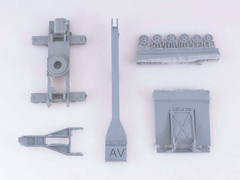 Набор пластиковых и металлических деталей для сборки модели Автомобильный экскаватор-кран ДКА-0,25/5 на шасси ЗИС-151 в масштабе 1/43.