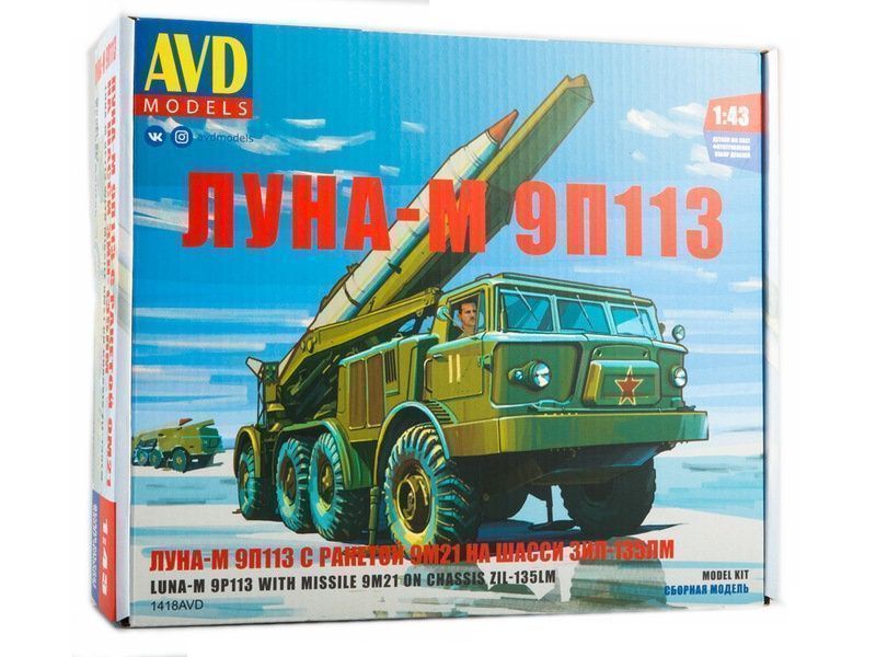 Сборная модель AVD ЛУНА-М 9П113 с ракетой 9М21 на шасси ЗИЛ-135ЛМ, 1/43