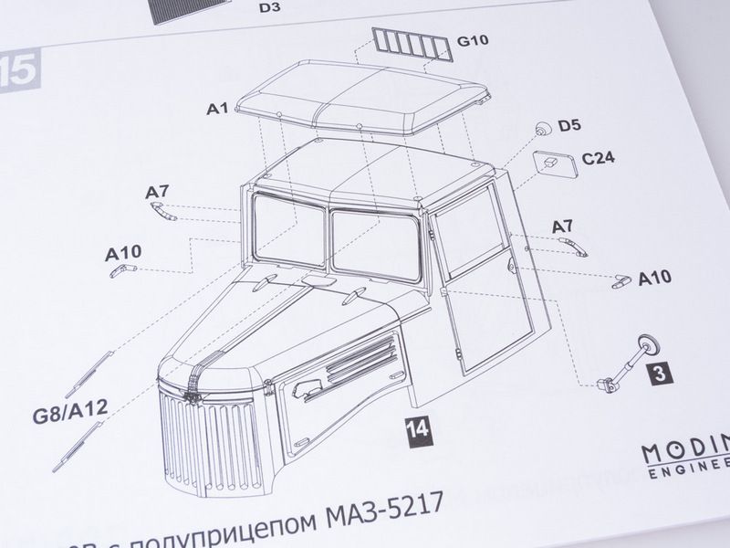 комплект деталей для сборки модели МАЗ-200В с полуприцепом МАЗ-5217инструкция по сборке
