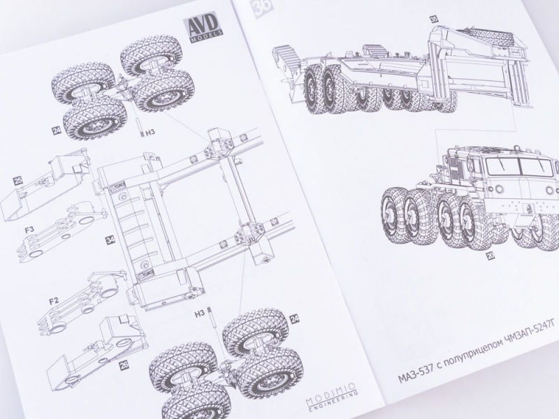 комплект деталей для сборки модели МАЗ-537 с полуприцепом ЧМЗАП-5247Гинструкция по сборке