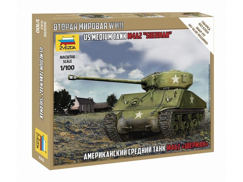 Сборная модель ZVEZDA Американский средний танк "Шерман" М4А2, 1/100
