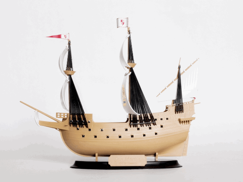 Галеону Сан-Мартин, с 52 пушками на борту и водоизмещение почти 1000 тонн, в конце 16 века было суждено стать флагманским кораблем Непобедимой армады. Тогда легендарный галеон был побежден. Но история сберегла корабль и его эпоху. И сегодня шикарная модель знаменитого корабля может украсить любую полку. А игрокам предоставлена возможность ввести галеон в игровую систему The Ships и написать свою собственную цепь событий конца 16 века. Модель придется по душе моделистам и всем неравнодушным к парусным судам.