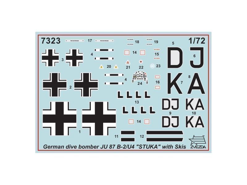 Сборная модель ZVEZDA Нем.бомбардировщик Юнкерс Ju-87B2-U4 "Stuka" на лыжах (сборка без клея), 1/72