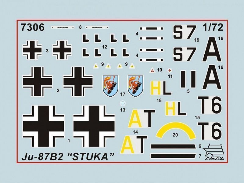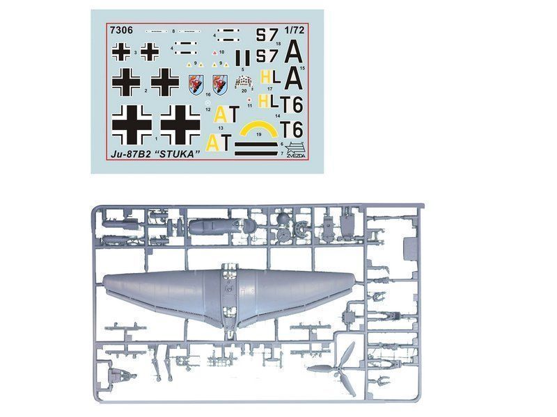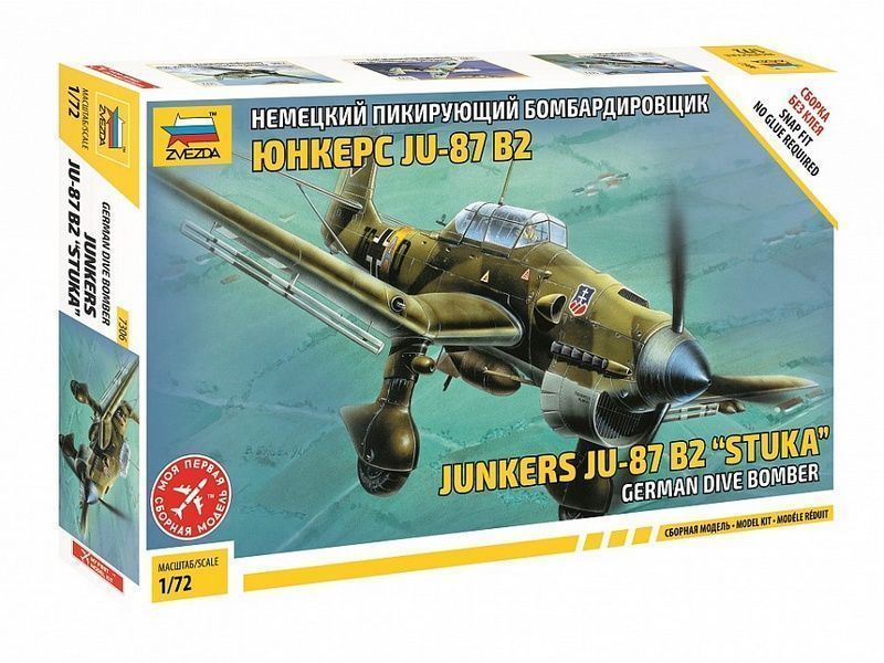 Сборная модель ZVEZDA Немецкий бомбардировщик Юнкерс Ju-87B2 (сборка без клея), 1/72