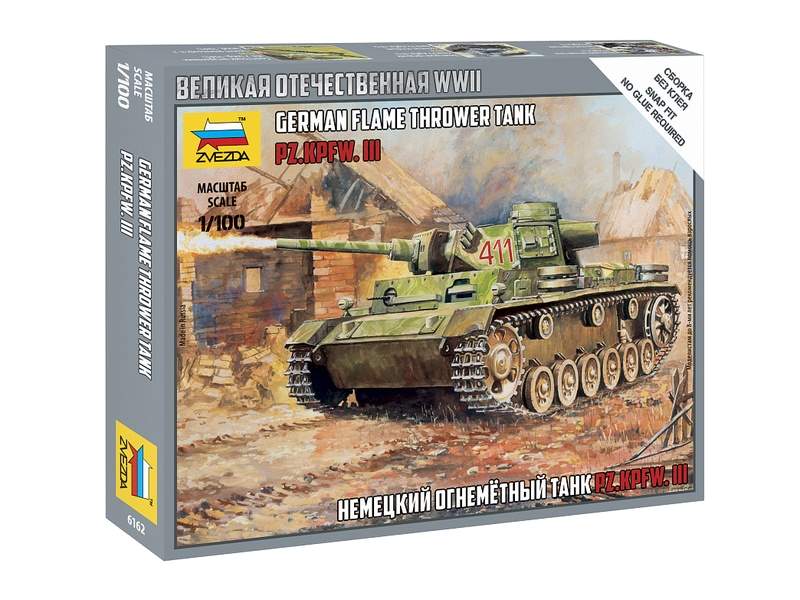Сборная модель ZVEZDA Немецкий огнеметный танк Pz.Kfw III, 1/100