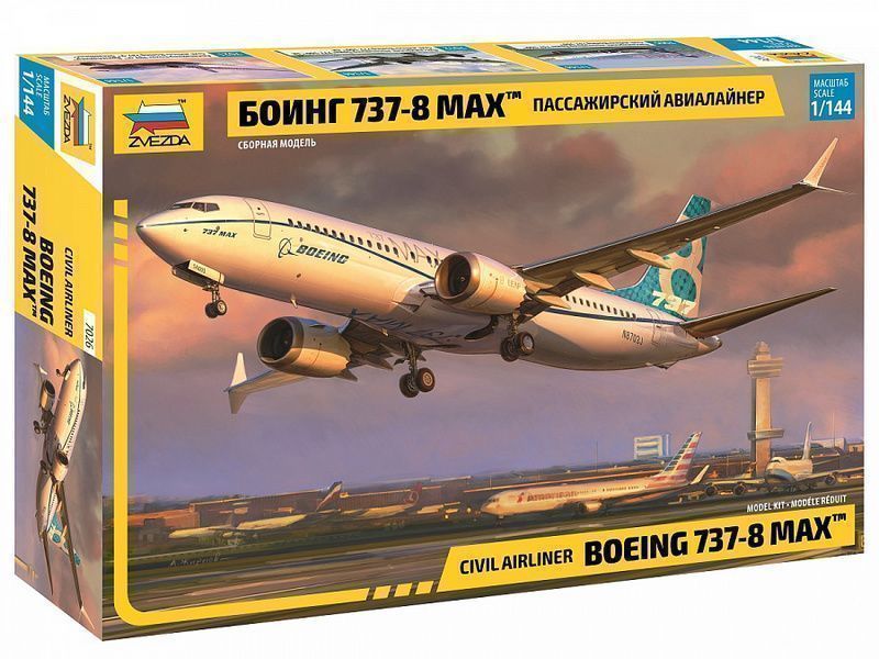 Сборная модель ZVEZDA Пассажирский авиалайнер Боинг 737-8 MAX, 1/144