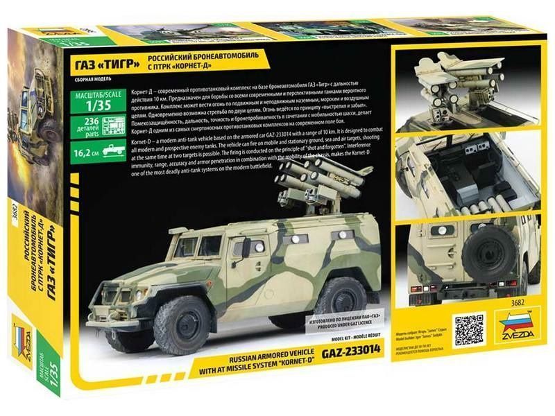 Сборная модель ZVEZDA Российский бронеавтомобиль ГАЗ "ТИГР" с ПТРК "Корнет-Д", 1/35