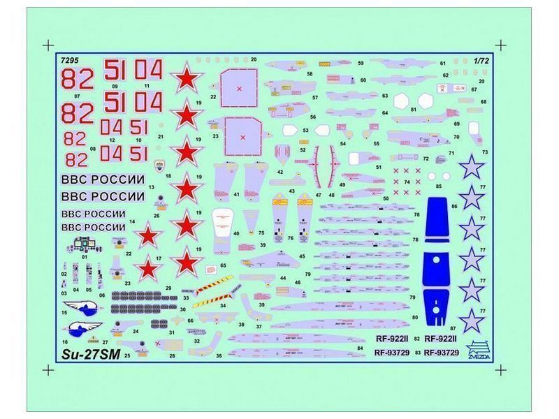 Подробная декаль с проработанной техничкой как для самолёта так и для вооружения 3 вариантов ВВС России.