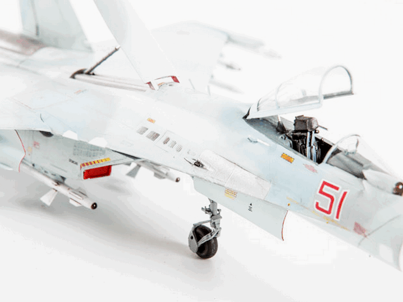 Российский многоцелевой истребитель завоевания превосходства в воздухе Су-27СМ. При проектировании использовались оригинальные чертежи КБ “Сухого”. Добавив к этому самые передовые технологии производства, мы получили модель высочайшего качества и копийности.
