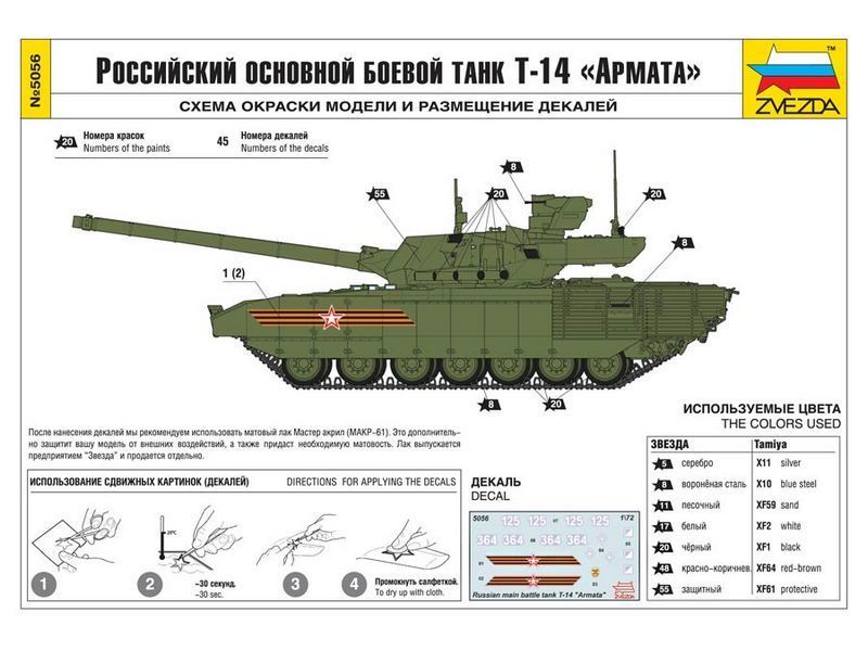 комплект пластиковых деталей для сборки одной модели Российского основного боевого танка Т-14 "Армата"инструкция по сборке