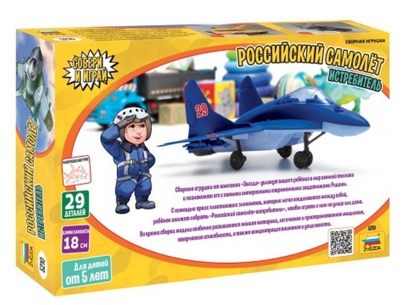 Детские сборные игрушки от компании «Звезда» увлекут вашего ребёнка в мир военной техники и познакомят его с самыми интересными современными защитниками Родины. С помощью ярких пластиковых элементов, которые легко соединяются между собой, ребёнок сможет собрать «Российский самолёт-истребитель», чтобы играть с ним на улице или дома.