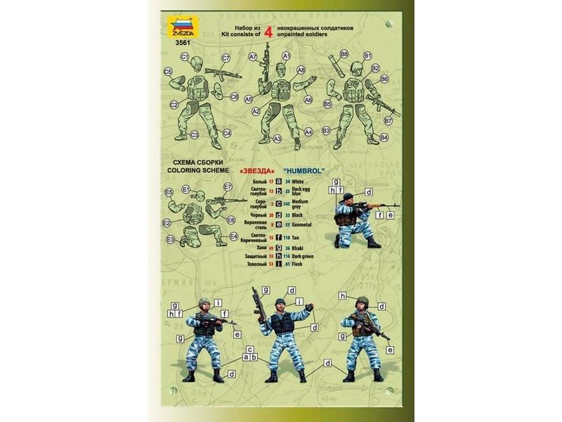 Набор состоит из 4 фигур бойцов подразделения специального назначения Российской Федерации.