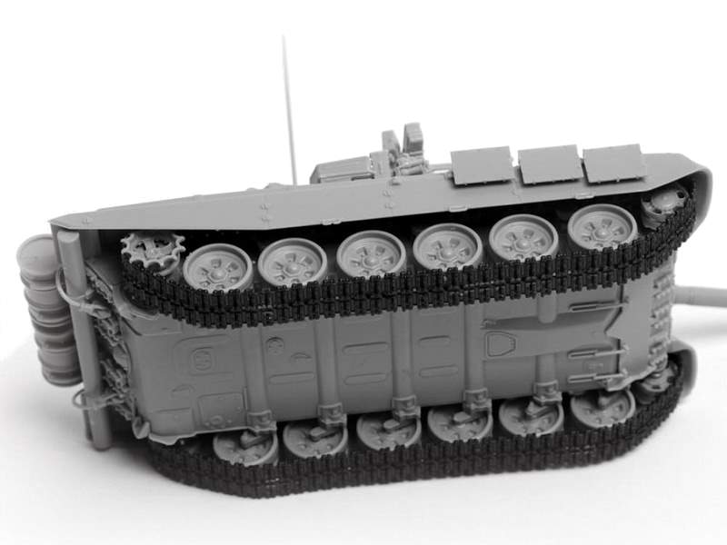 Гусеничная лента выполнена единой деталью из чёрного полистирола, изгибается по месту в процессе сборки.