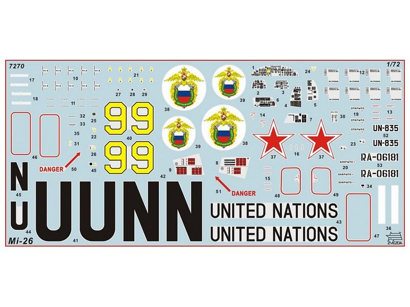Детализированная декаль, включающая технические надписи, для вариантов ВВС России и ООН.