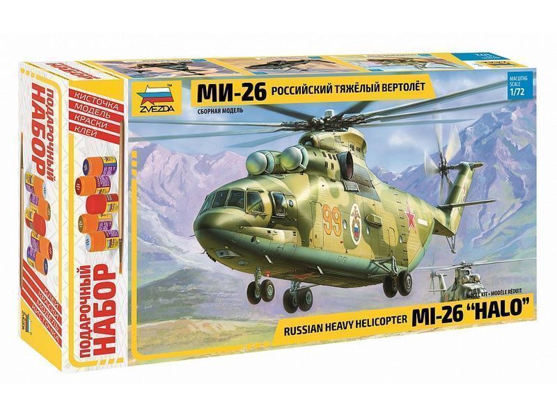 Сборная модель ZVEZDA Российский тяжелый вертолет Ми-26, подарочный набор, 1/72