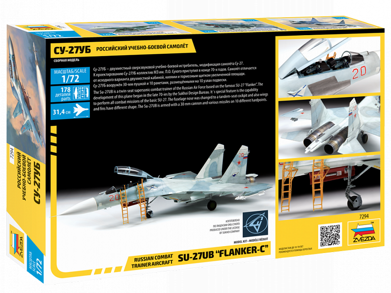 Сборная модель ZVEZDA Российский учебно-боевой самолёт Су-27УБ, 1/72