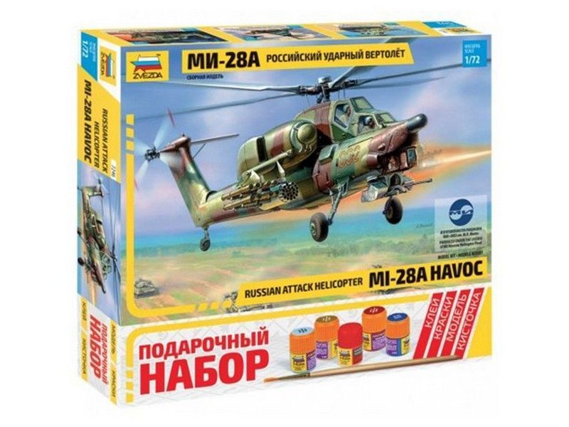 Сборная модель ZVEZDA Российский ударный вертолёт Ми-28А, подарочный набор, 1/72