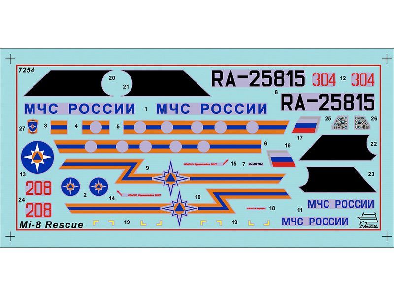 Комплект пластиковых деталей для сборки 1 модели. Декаль для 2 вариантов МЧС РоссииСпецификация: