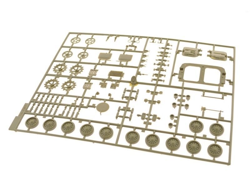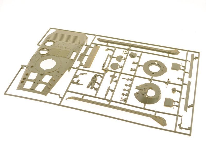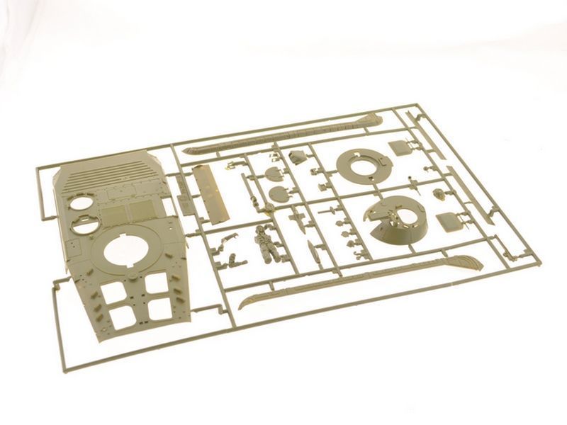Комплект деталей из пластмассы для сборки одной модели.Модель комплектуется полностью наборными гусеницами.