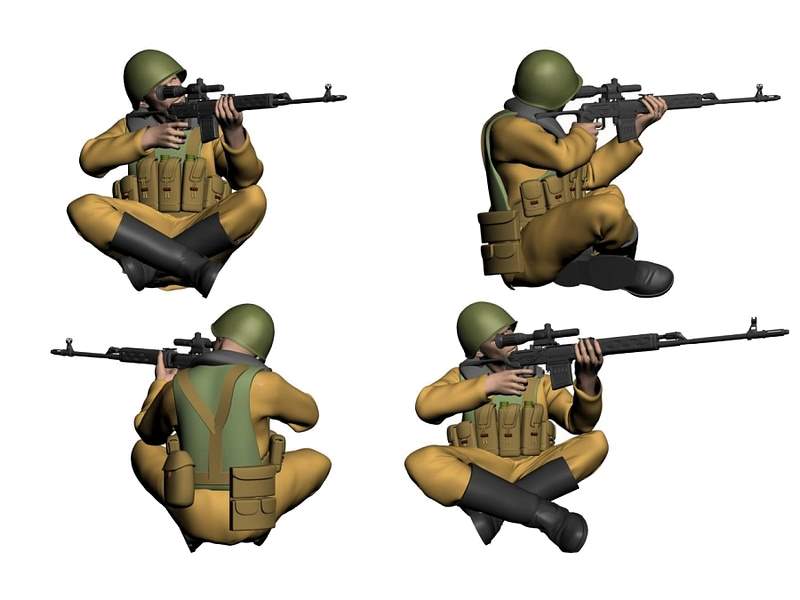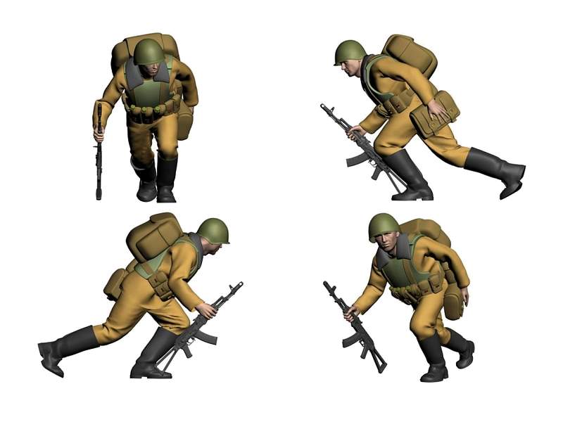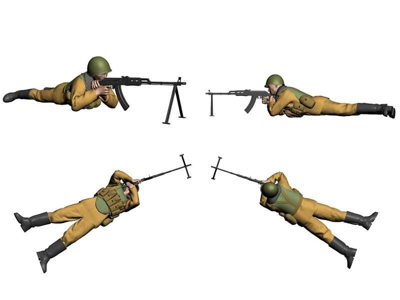 В наборе 6 фигур с различным вооружением: автоматы Ак-74, пулемет РПК, снайперская винтовка Драгунова.