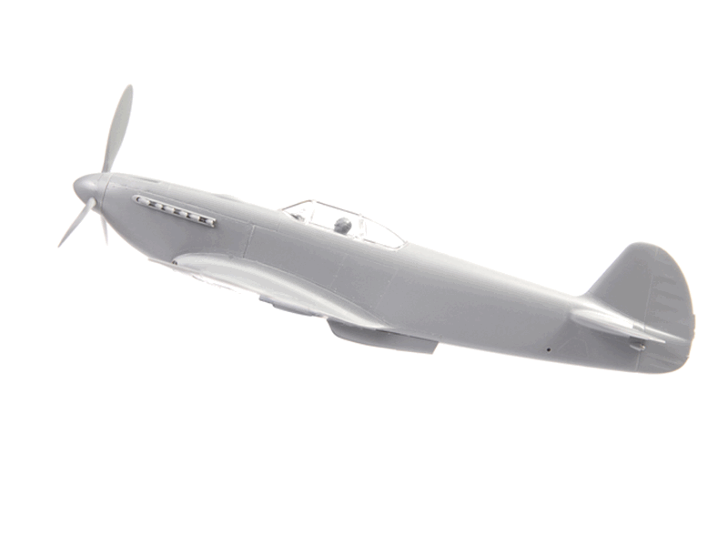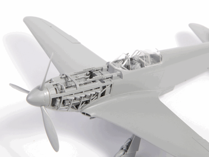 Высокодетализированный сборный рядный двигатель, проработанная несущая рама двигателя и система выхлопа, возможность сборки с открытыми кожухами двигателя для обзора двигателя и пулемётов.