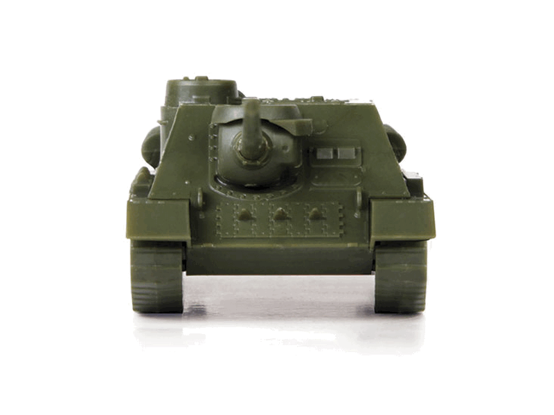 Производство СУ-100 продолжалось до середины 1950-х годов. Они поставлялись странам - союзникам СССР и принимали участие во многих вооруженных конфликтах второй половины XX века. Сегодня мы представляем вашему вниманию модель СУ-100 в масштабе 1:100. Модель в точности воспроизводит внешний вид этой самоходно-артиллерийской установки и, несмотря на малый масштаб, она достаточно подробно детализирована.