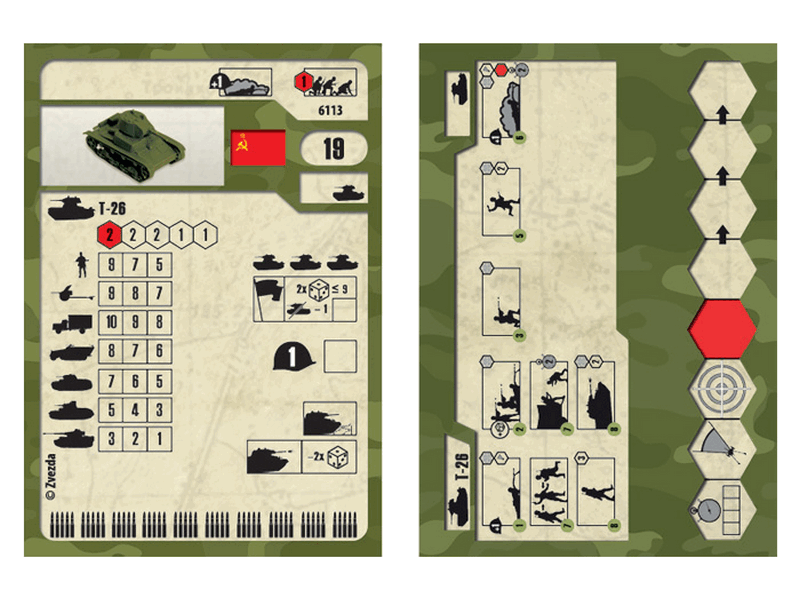 В игре представлена модификация танка Т-26, образца 1939 года с конической башней. Танк отлично справляется с пехотой и лёгкими немецкими танками. По цене-качеству отлично подходит для игры на 100-150 очков в качестве единственной бронированной единицы у советского командира. Из минусов можно отметить слабую степень защиты.