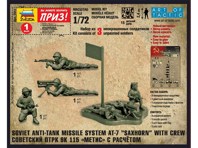 Сборная модель ZVEZDA Советский противотанковый ракетный комплекс «Метис» с расчётом, 1/72