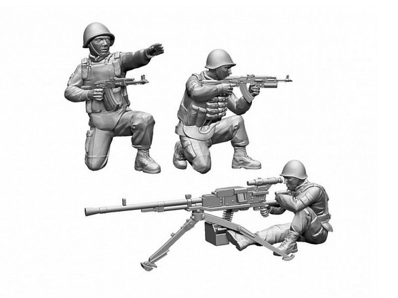 Комплект пластиковых деталей для сборки 3 неокрашенных фигур.Детализированные сборные фигуры в различных позах с детально проработанным оружием.