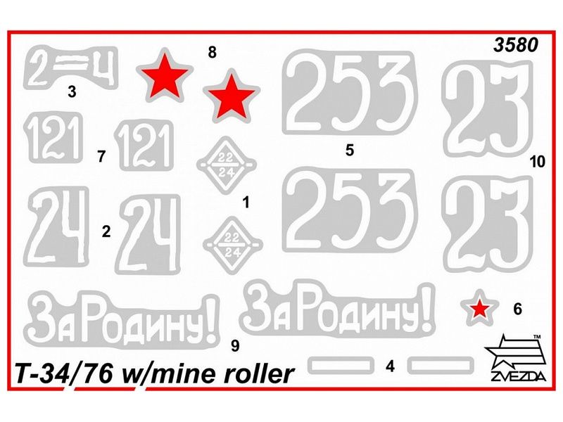 Сборная модель ZVEZDA Советский средний танк с минным тралом Т-34/76, 1/35
