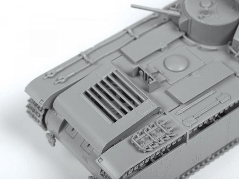 Набор деталей из пластмассы для сборки одной модели неокрашенного танка.