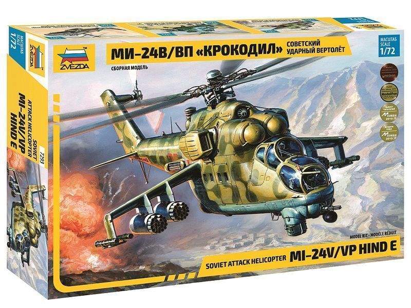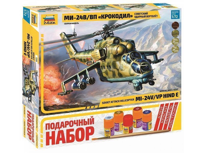 Сборная модель ZVEZDA Советский ударный вертолет Ми-24В/ВП "Крокодил", подарочный набор, 1/72